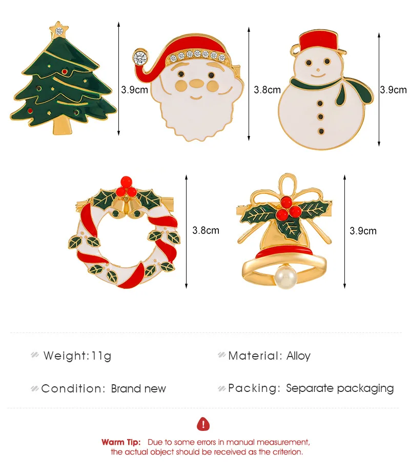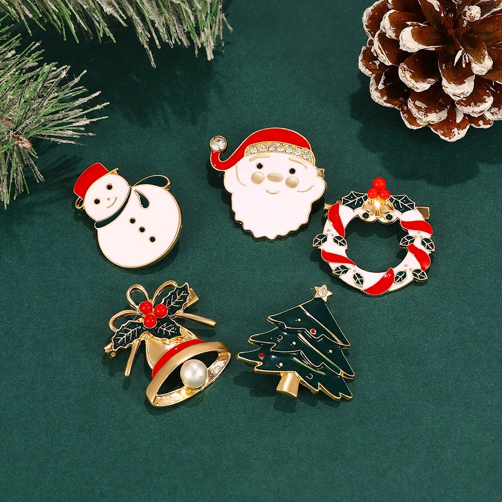 Christmas Brooch Cartoon Snowman Bell Chest Flower Emblem Santa Claus Christmas Tree Collar Pins Christmas Party Decorations